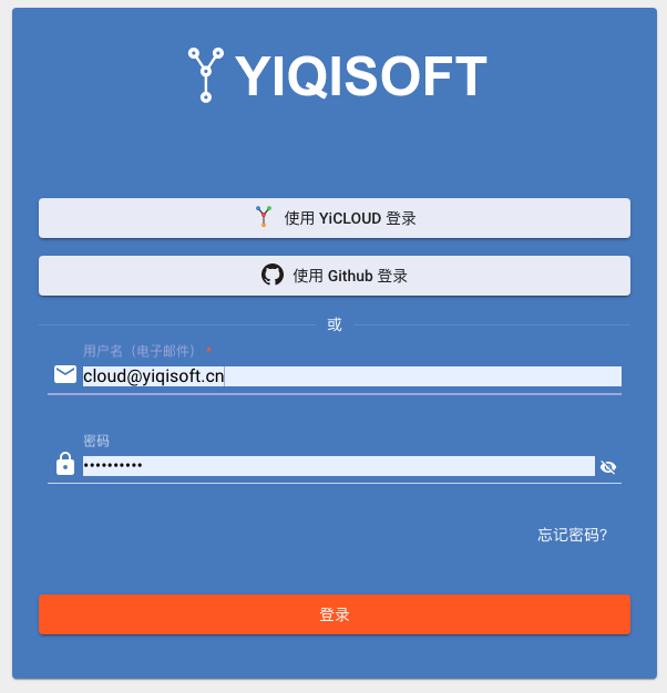 - 使用 GitHub/Apple/Facebook/Google 等;